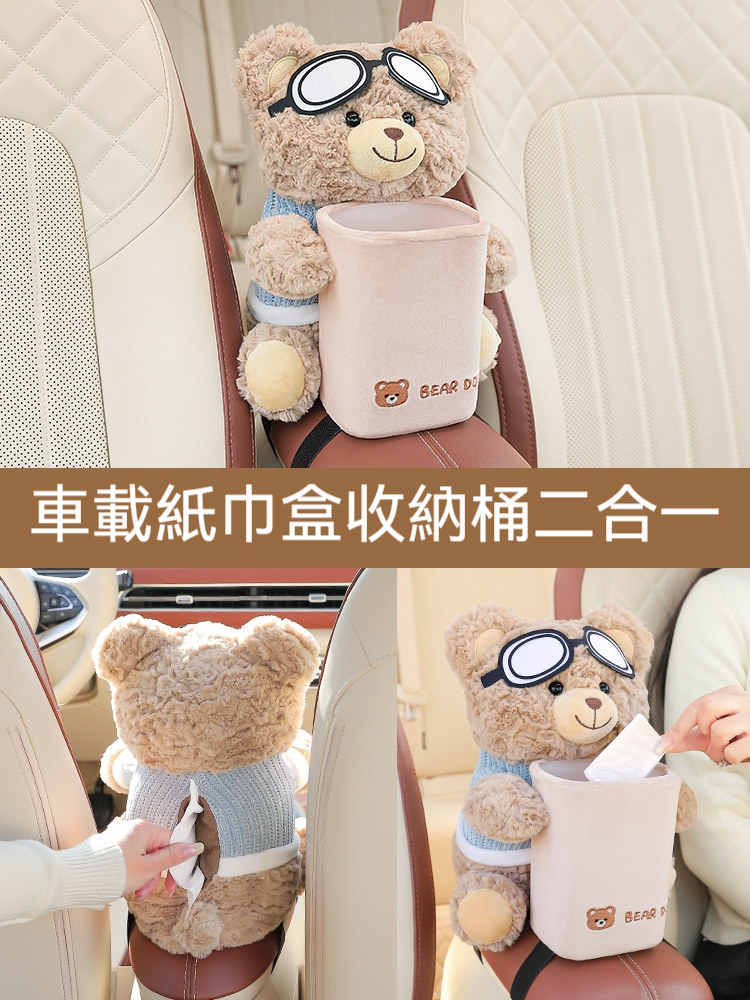 「眼鏡小熊二合一置物桶」✅ 二合一創意設計✅ 眼鏡小熊造型,萌感瞬間點亮車內✅ 穩固實用,小空間大容量