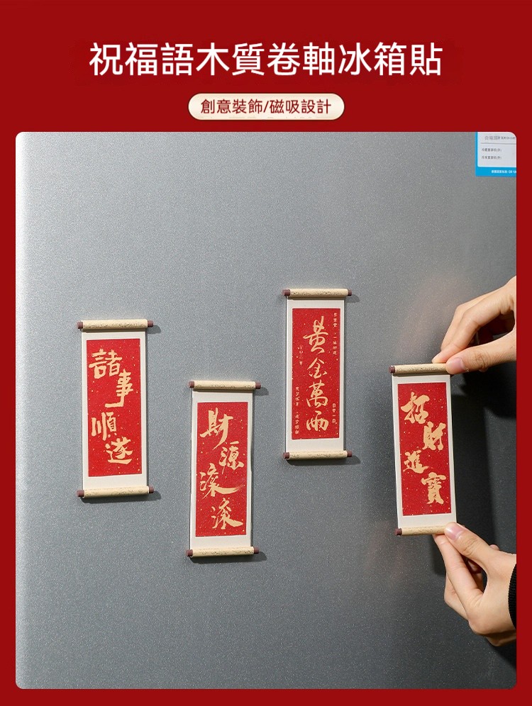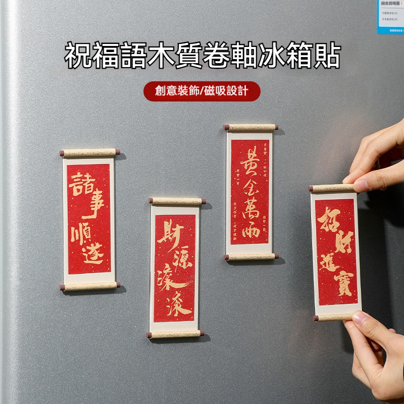 【2026木質卷軸祝福語冰箱貼】✅ 原木手感,刻字精緻✅ 強力磁貼,貼牢不滑落✅ 自由組合,創造你的風格牆 #禮物推薦 #新年裝飾
